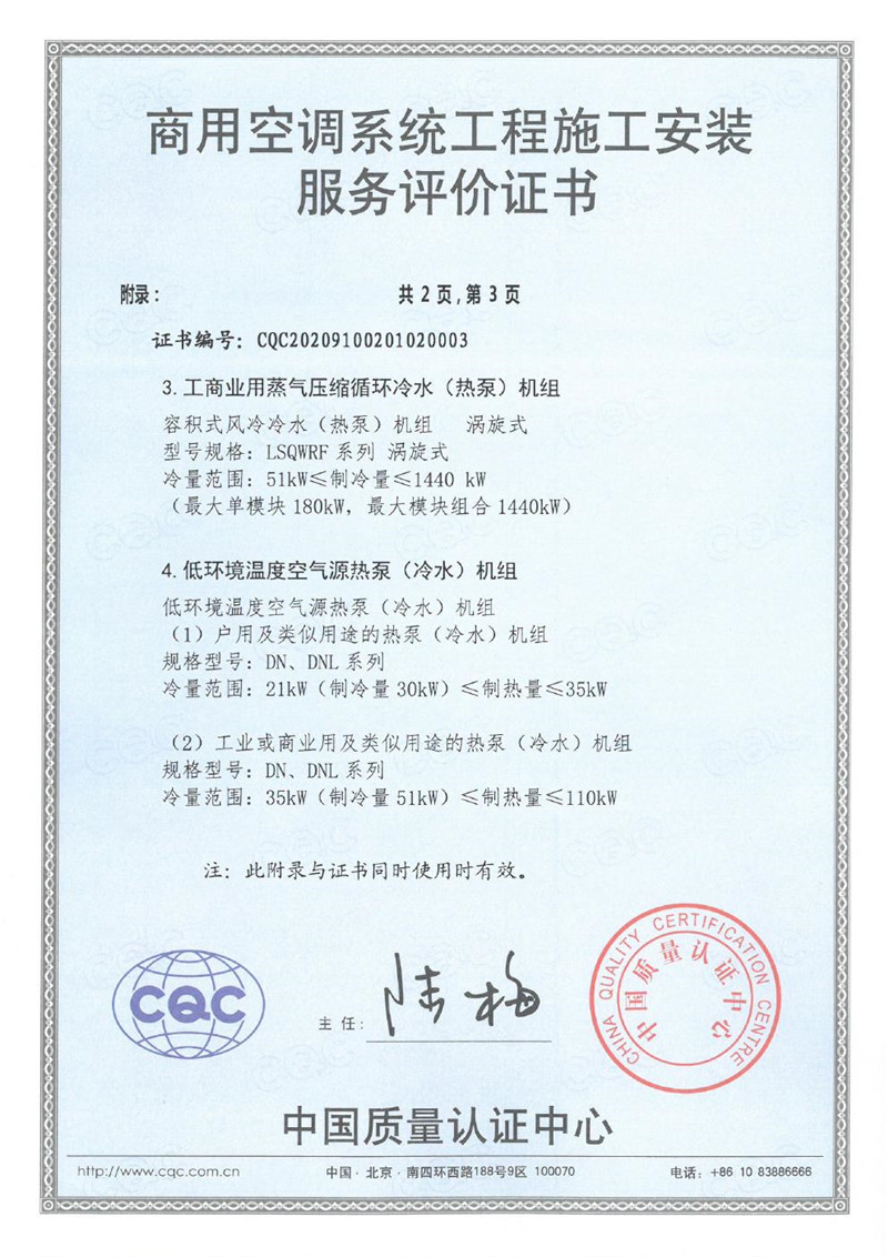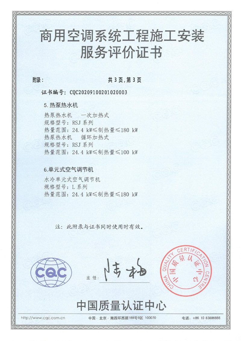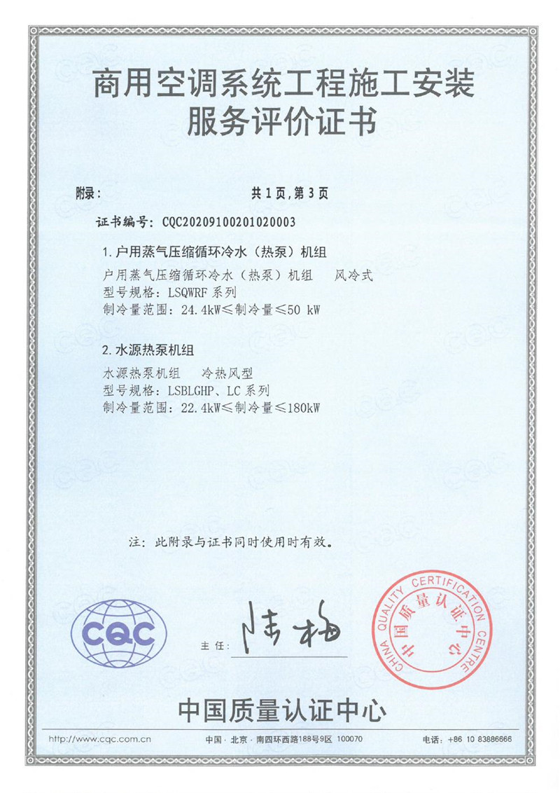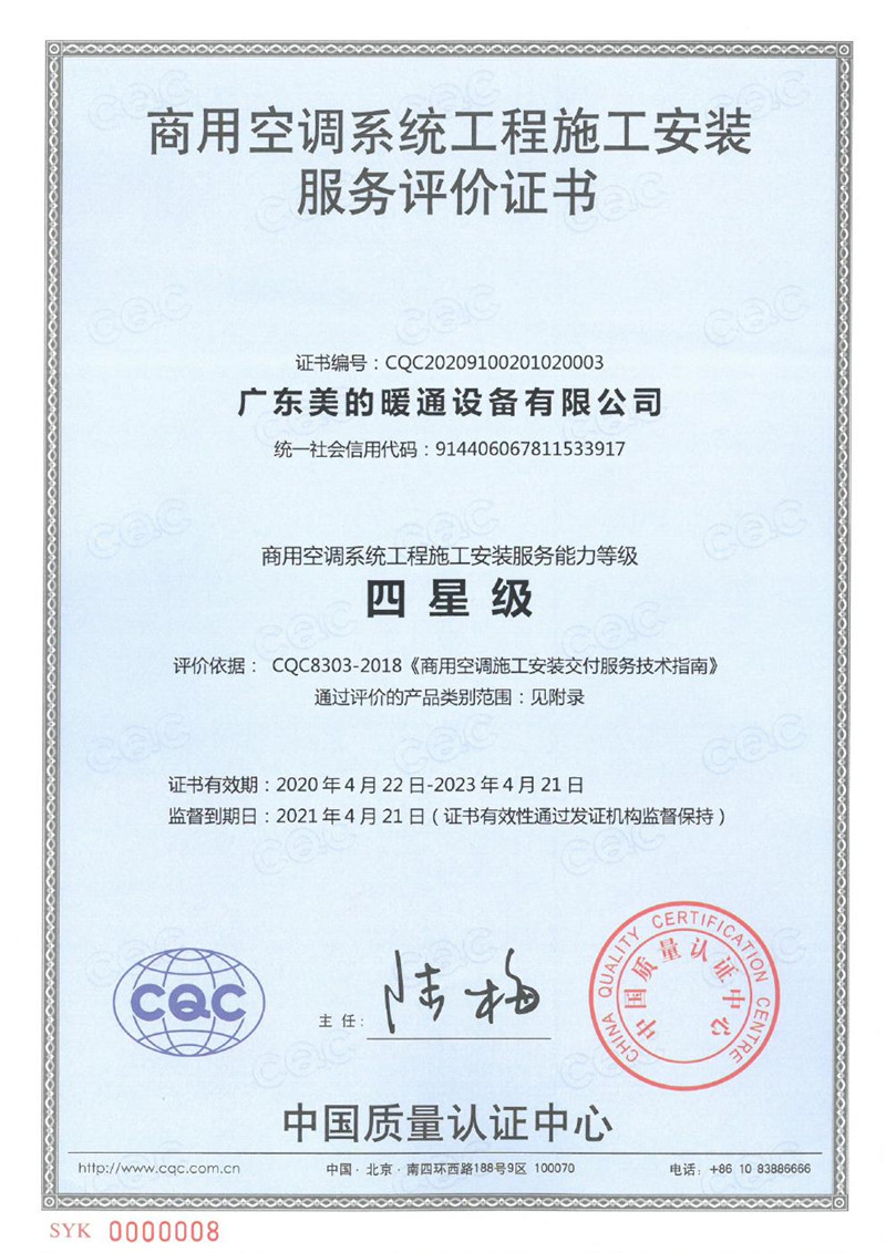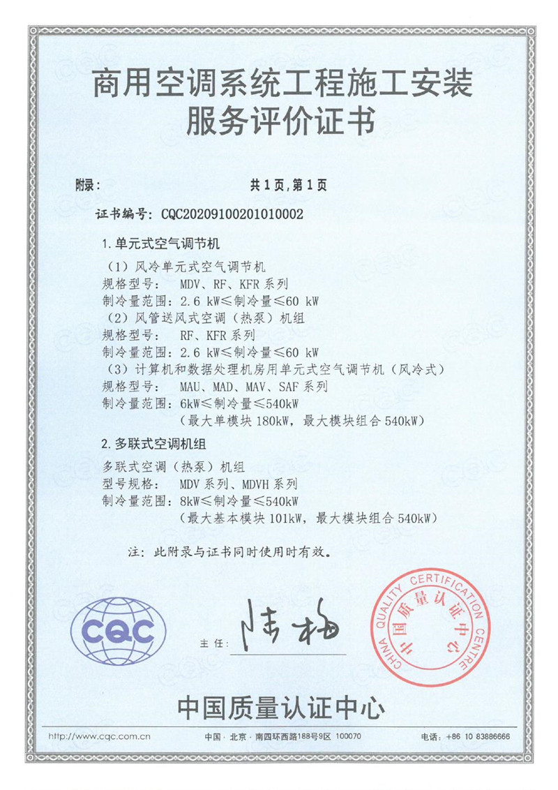 商用空調(diào)系統(tǒng)工程施工安裝服務(wù)評價證書和附件